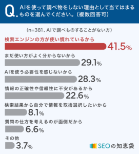 AIを使って調べ物をしない理由として当てはまるものを選んでください。(複数回答可)