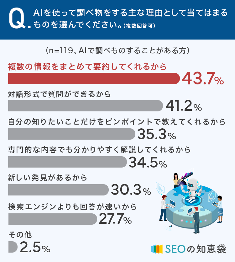 AIを使って調べ物をする主な理由として当てはまるものを選んでください。(複数回答可)