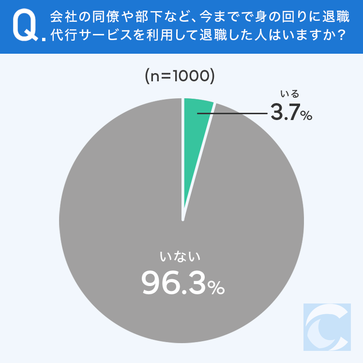 3.7%が、身の回りに退職代行サービスを利用して退職した人が「いる」