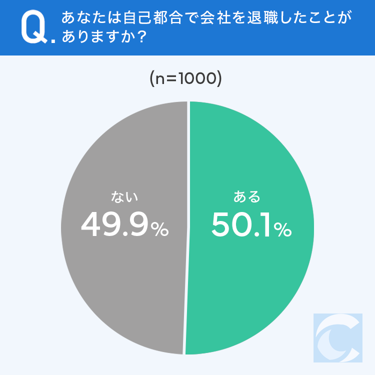 5割以上の方が「自己都合で会社を退職したことがある」と回答しています。