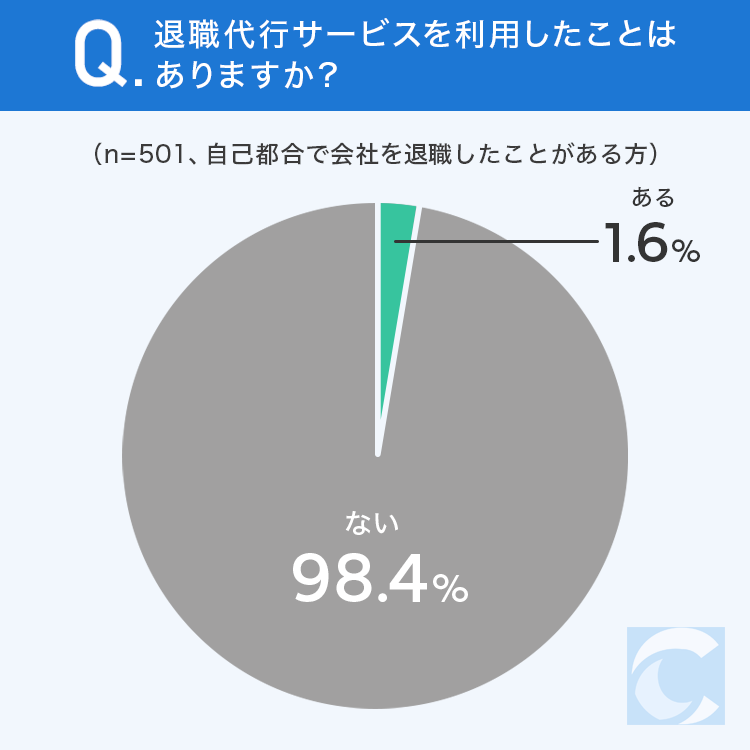 1.6%の方が、退職代行サービスを利用したことが「ある」と回答しています。