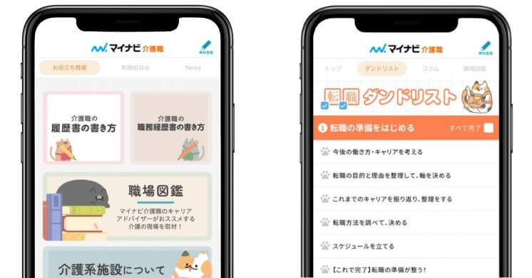- 介護職の転職に役立つコラムなどのコンテンツが豊富