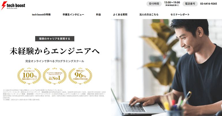 『tech boost』は、フリーランスエンジニアを目指すためのスキルを実践的に学べるカリキュラムを提供しています。