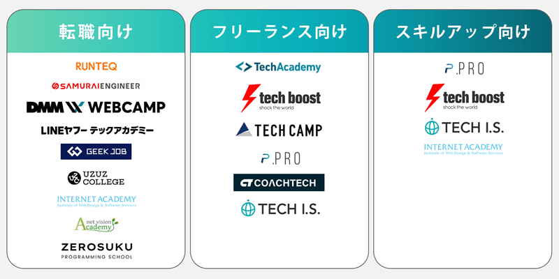 それぞれのスクールが提供するカリキュラムやサポート内容、学べる技術などを詳細なども解説しますので、自分に最適なスクールを見つけるための参考にしてください。