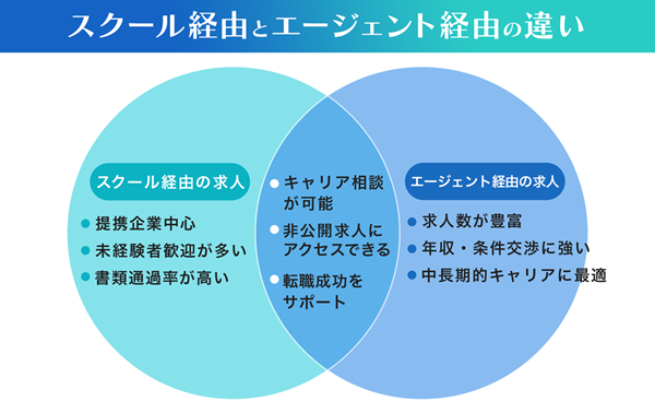 スクール経由は「未経験からの第一歩に強い」、エージェント経由は「求人の幅広さと条件交渉に強い」ところがそれぞれの強みです。