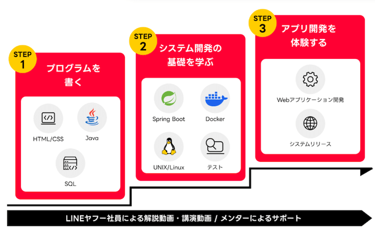 LINEヤフーテックアカデミーでは、「日本を代表するIT企業であるLINEヤフーが開発現場の知見を提供しています。