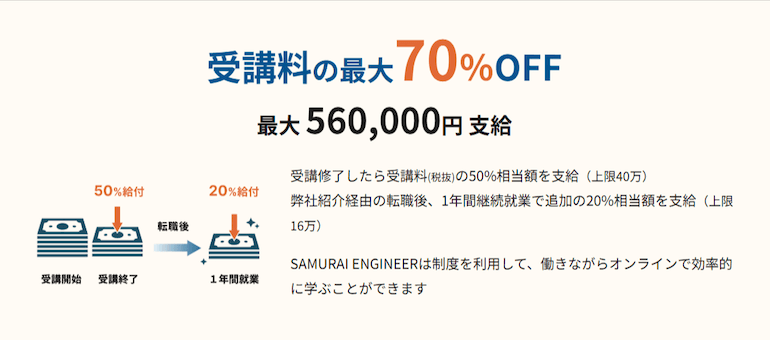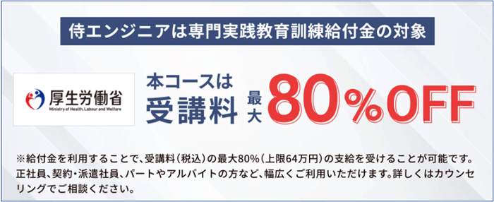 SAMURAI ENGINEERは一部コースが教育訓練給付金の対象です。