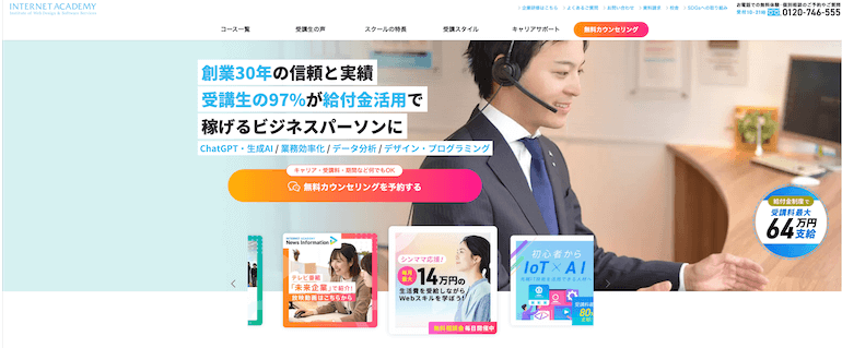 | インターネット・アカデミー | 就・転職サポートにも対応。グループ企業のウェブスタッフは日本初のWeb専門人材サービス会社。 |