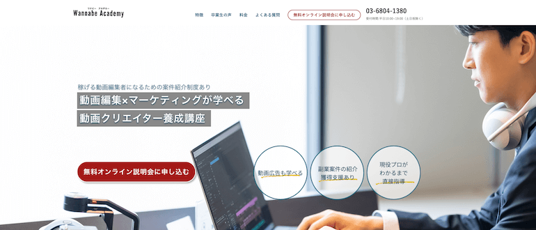 - 営業ノウハウまで網羅した「自立支援型」の動画編集スクール