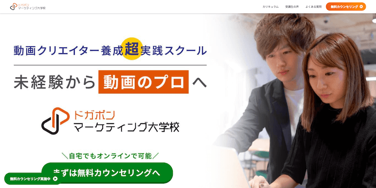 | ドガポン マーケティング大学校 | 受講生限定の独立支援や転職サポート有り。 |