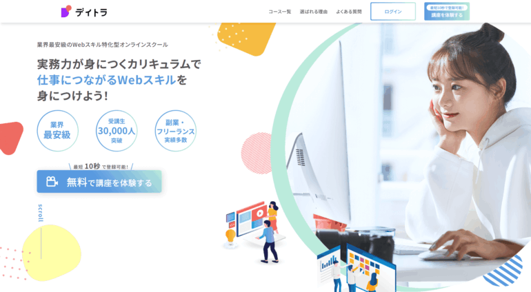 チャットでの質問対応や動画教材見放題など、学び続けやすい環境も整っており、副業希望者やスキルアップを目指す現役社会人にも支持されています。