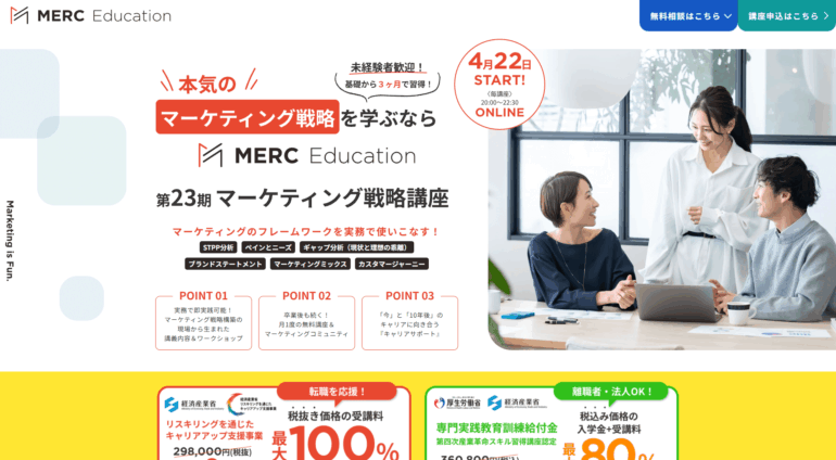 - 現役Webマーケターによる実践指導&少人数制授業