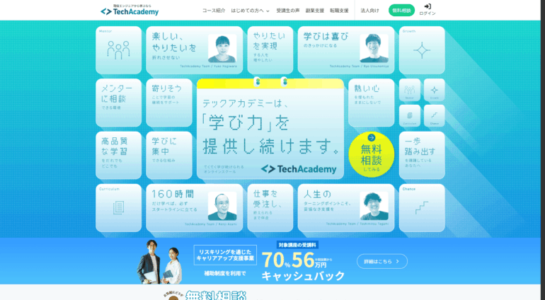 - リスキリング補助金対応&8日間の全額返金保証つき