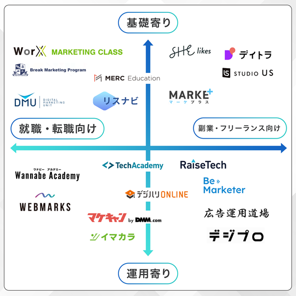 まずは、各スクールの特徴を一目で把握できるカオスマップをチェックしてみてください。