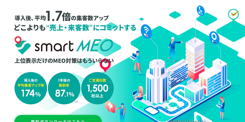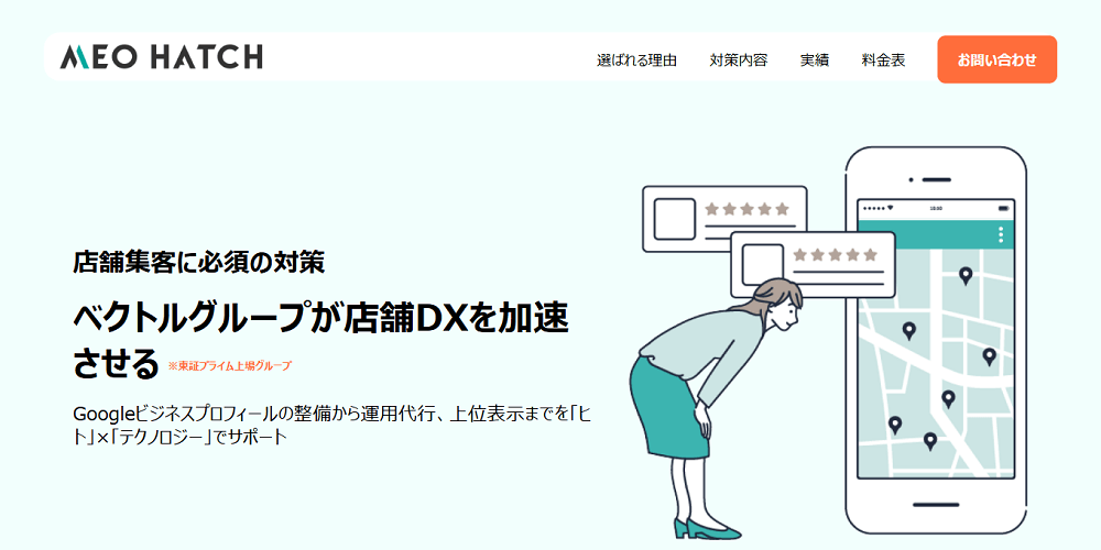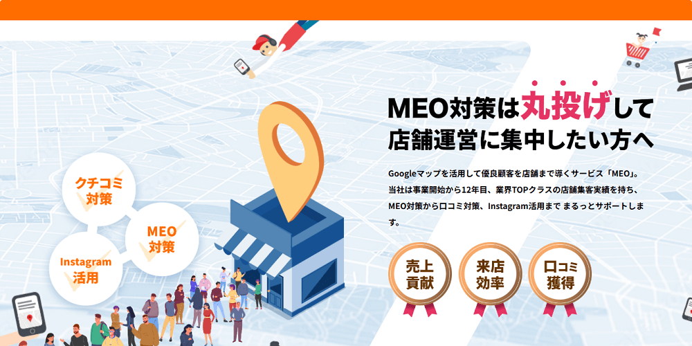 個人運営の小規模な店舗から、多店舗を運営する企業までサポートして実績を上げている会社です。国内外で80,000店舗が利用していると公表し、完全予約成功報酬型のMEOサービスも提供しています。