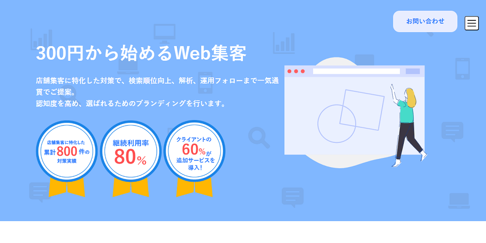 MEO対策に関しては、地域に根ざしたサポートが得意で医療施設との取引が多く提示されています。データに基づいた丁寧な施策を行い、費用対効果がしっかり出るサービスを実施している会社です。